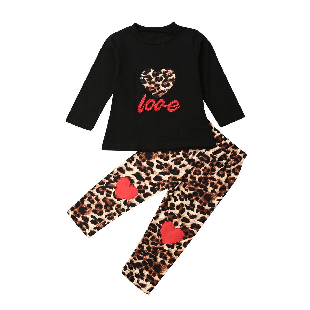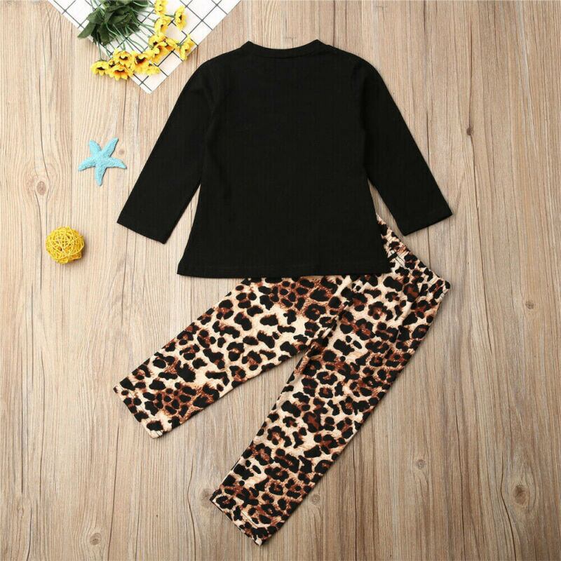 新作 1-6歳幼児ベビーキッドガールズセット長袖トップスパンツヒョウ衣装秋春ガールズ