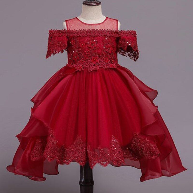 新作 夏のページェントピンクの花のドレスキッズドレス女の子の服子供服パーティーウェディングドレス1012年