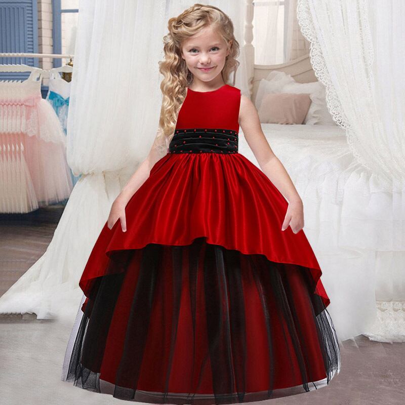 新作 夏の子供服の女の子ページェントイブニングパーティー結婚式の子供ドレス女の子のロングドレスビーズ1012年
