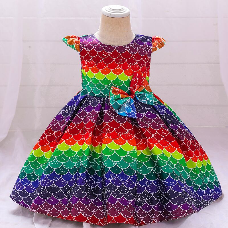 新作 カラフルなストライプの子供服1歳の誕生日ドレス女の赤ちゃんのバプテスマドレスカラーコントラストパーティードレスVestidos