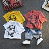 新作 男の子のセット夏の白い漫画の子供子供スポーツスーツジャンショーツ幼児の男の子の服セット14 67年