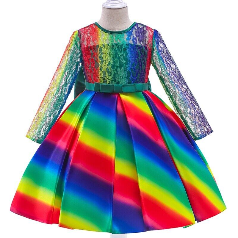 新作 長袖キッズカラフルドレスガールズキッズガールパーティーツツドレスレースウェディングドレスバースデー810 Y