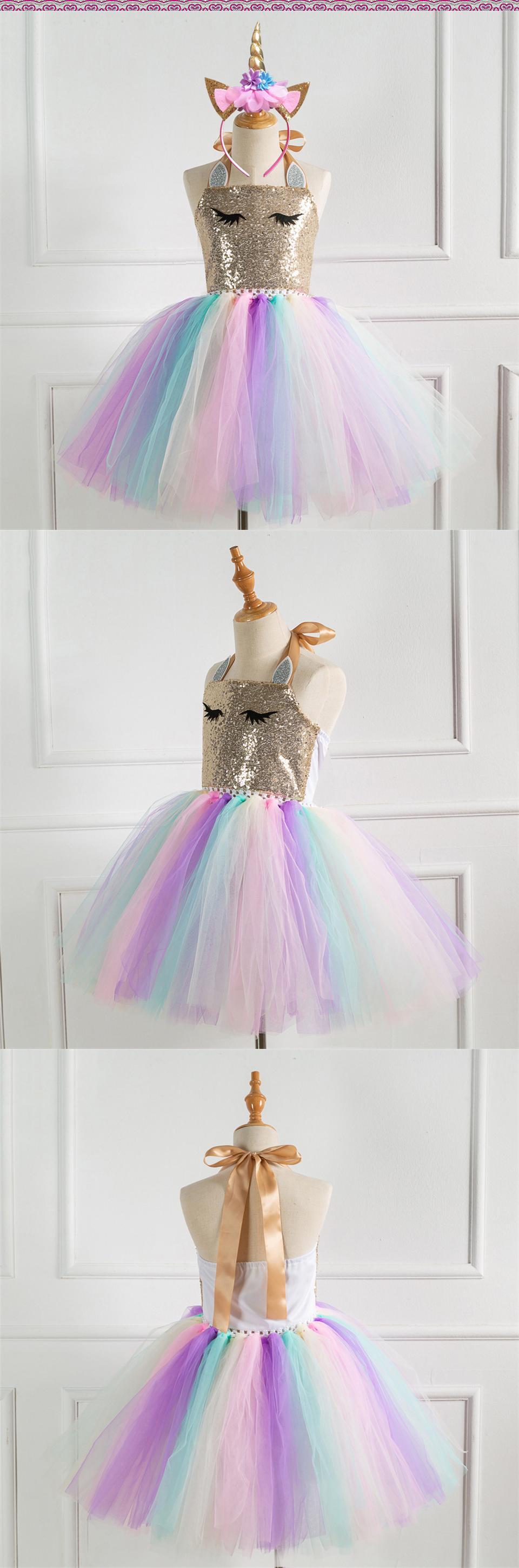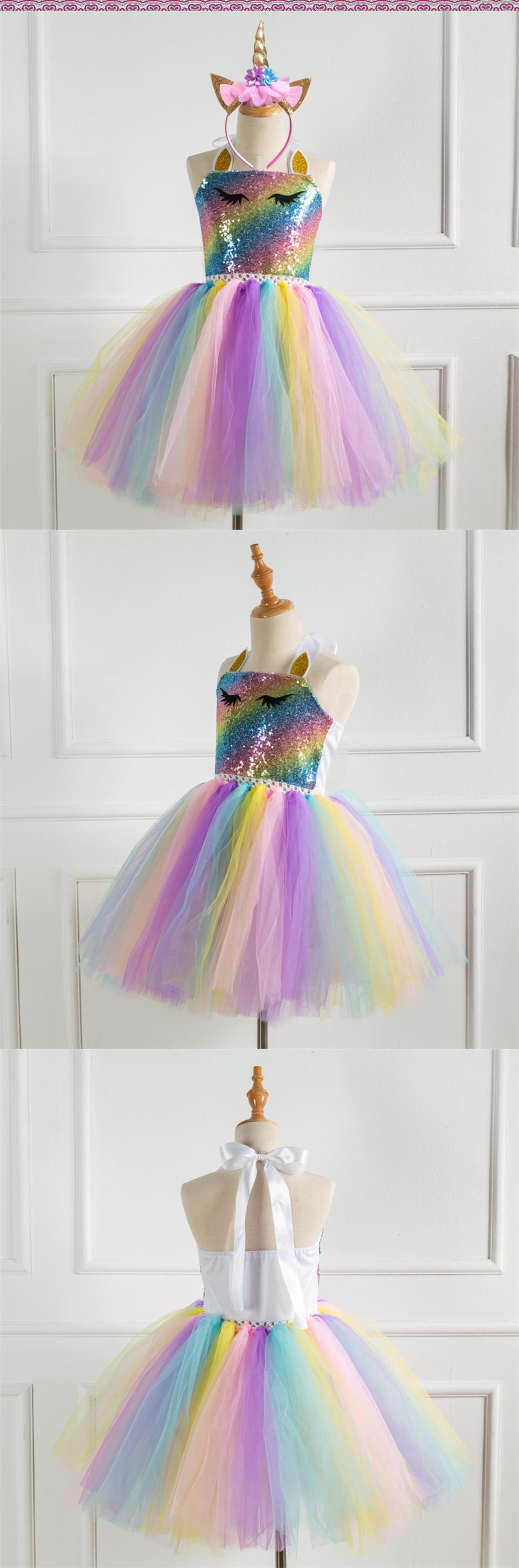新作 ファンタジーエンジェルフラワーガールズレインボーリトルポニーユニコーンパーティードレスキッズメッシュ馬服子供ボイルユニコーンウィッグウィッグ