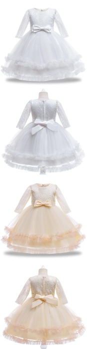 新作 サマーキッズ長袖ドレスガールチルドレンパーティーピュアレースドレスガールズヴェスティドベイビーホワイト810