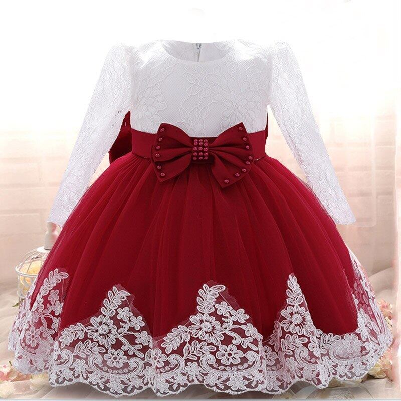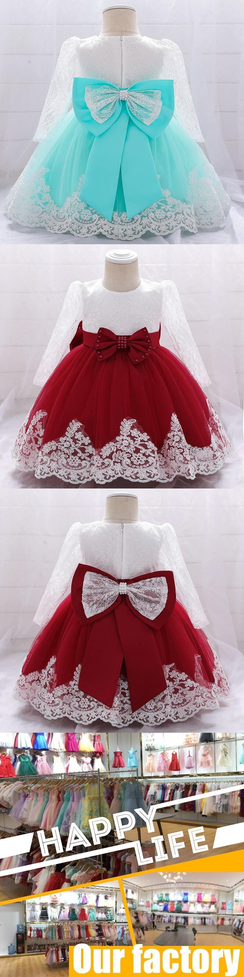 新作 2021年長袖の女の赤ちゃんのドレス21歳の誕生日のドレスの女の子Christeningレースパーティーのウェディングドレス