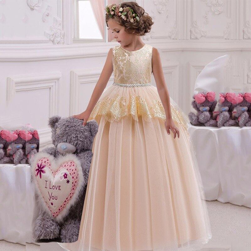 新作 夏4-14年の十代の若者たちのパーティークリスマスの女の子のドレス子供たちの結婚式の花子供服ページェント長いVestidos