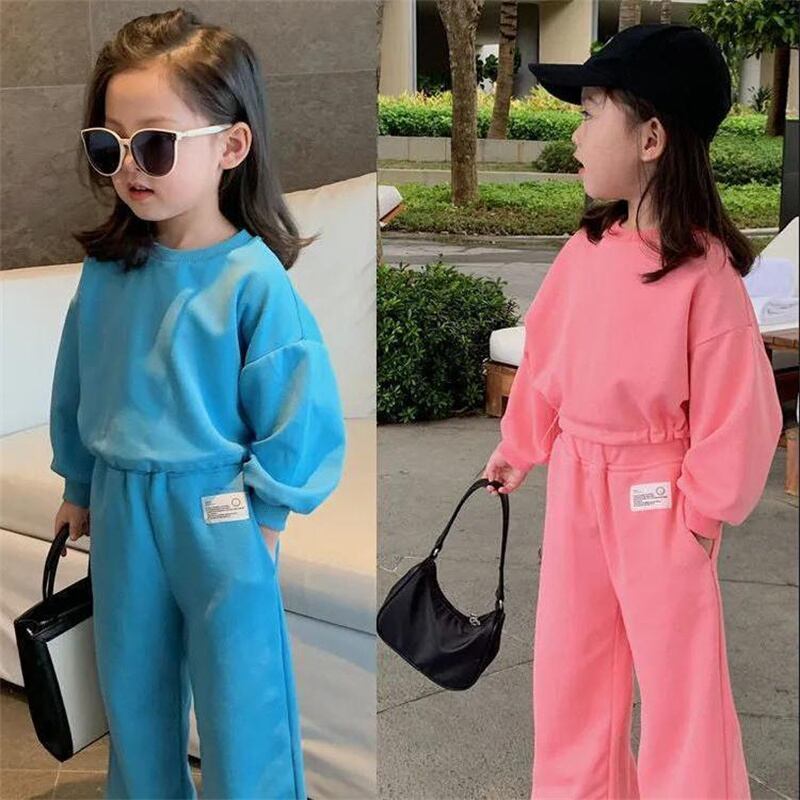 新作 キッズ子供ベビーガールズセットオータムブルー長袖スポーツスーツトラックスーツ幼児服衣装12 3 45年