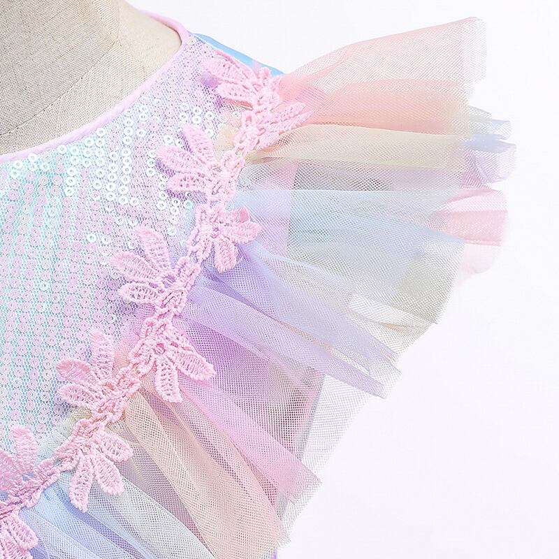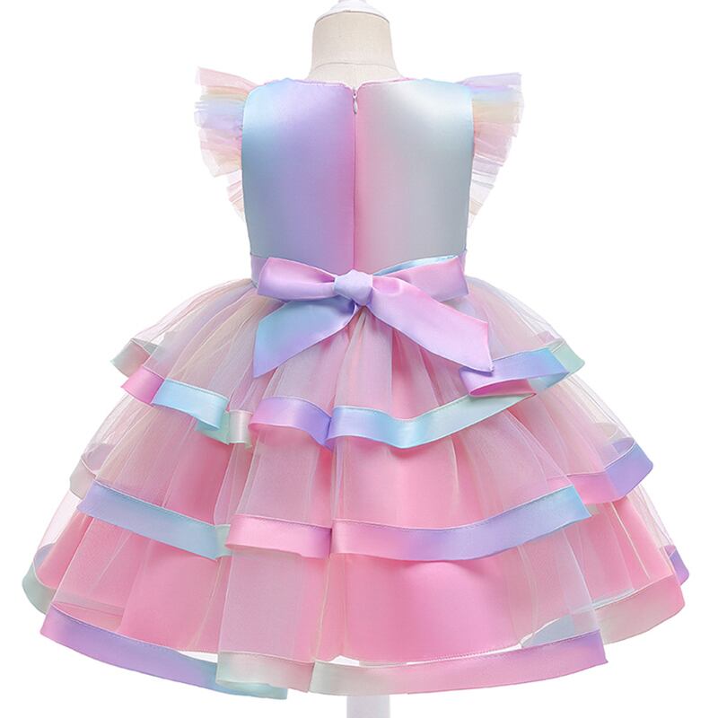 新作 夏のカラフルな3層ケーキの女の子のドレス花の子供服パーティーのウェディングドレス子供のバプテスマ48年