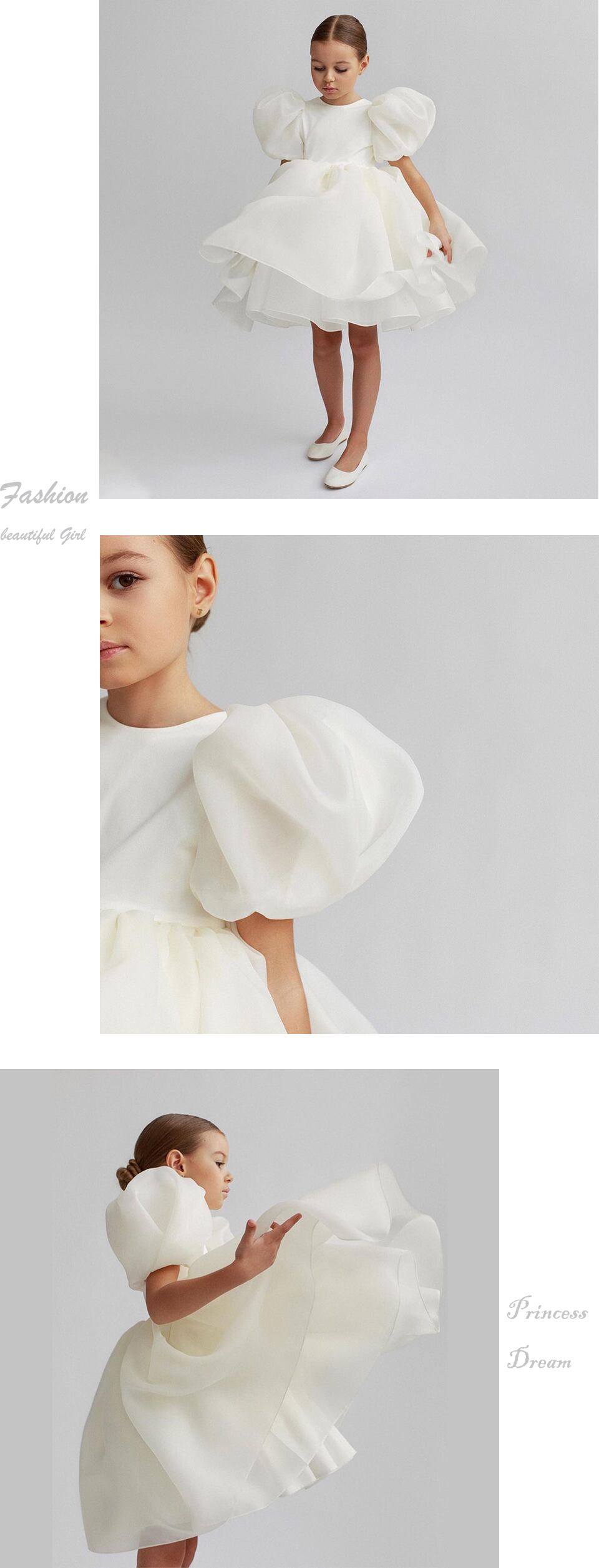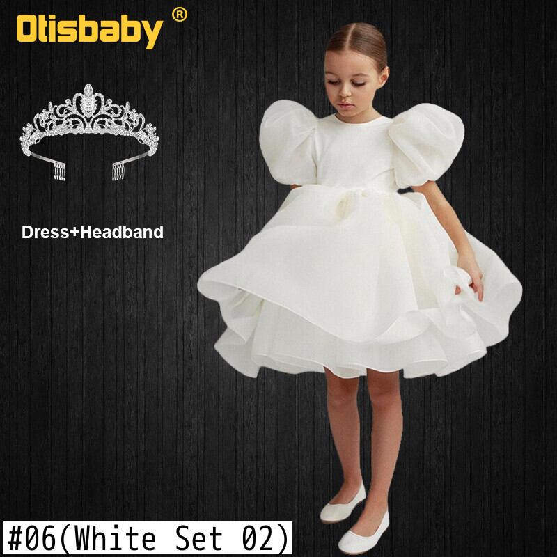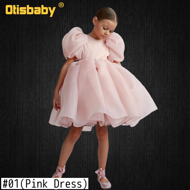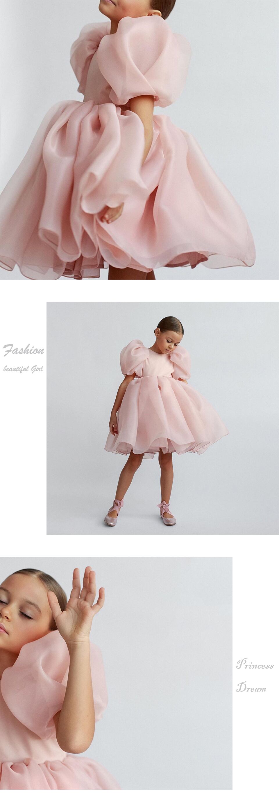 新作 2022ガールソリッドパフスリーブボールガウンシフォンレースドレスホワイトピンクElagentガールズセレモニーバースデーパーティーウエディングドレス