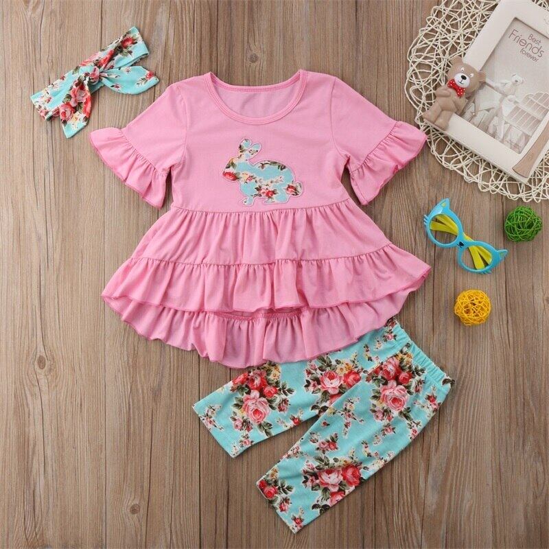 新作 2-7T幼児キッズベビーガールズイースターのフラワーバニートップチュニックブラウスパンツレギンス衣装セット服