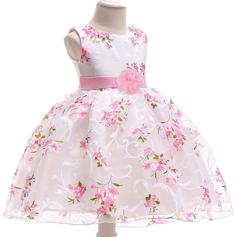 新作 フラワーガールドレスバースデーピンクベビードレスキッズガールズウェディングティーンズ洋服パーティーVestidosInfantis