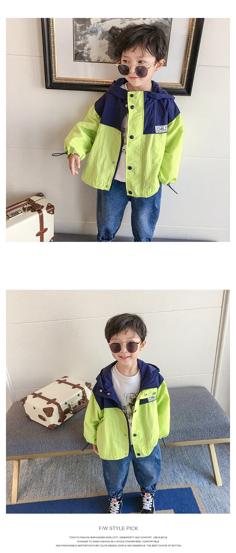 新作 ティーンズボーイズ春秋カーディガンパッチワークコート子供ウインドブレーカーフード付きジャケット長袖衣装45 6 7 8 9 1012年
