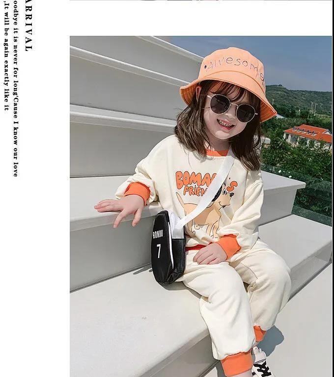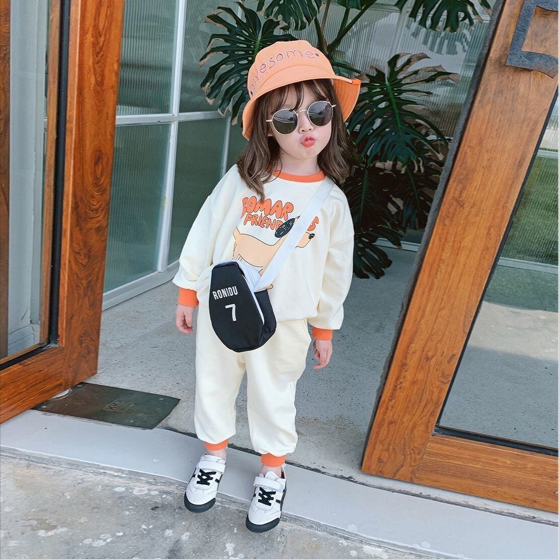 新作 キッズ子供ベビーガールズセット秋の漫画長袖スポーツスーツトラックスーツ幼児服衣装12 3 45年