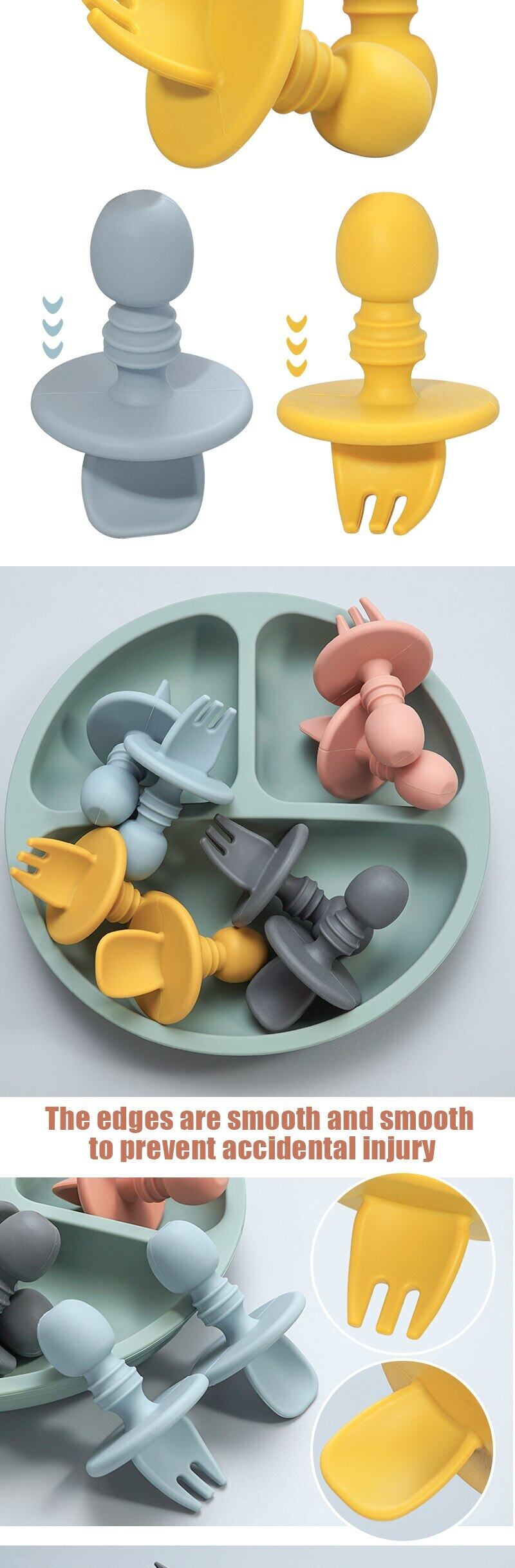 新作 幼児kとスプーンセットショートハンドルシリコンkとスプーンベビートレーニングkとスプーンコンボセット赤ちゃんは食べることと食べることを学ぶ