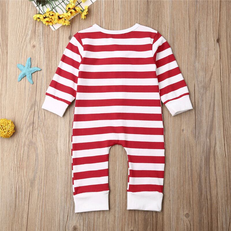 新作 0-24Mクリスマスベイビーレッドロンパース生まれ幼児ベイビーボーイズガールズロングスリーブジャンプスーツストライプ秋春クリスマスベイビー