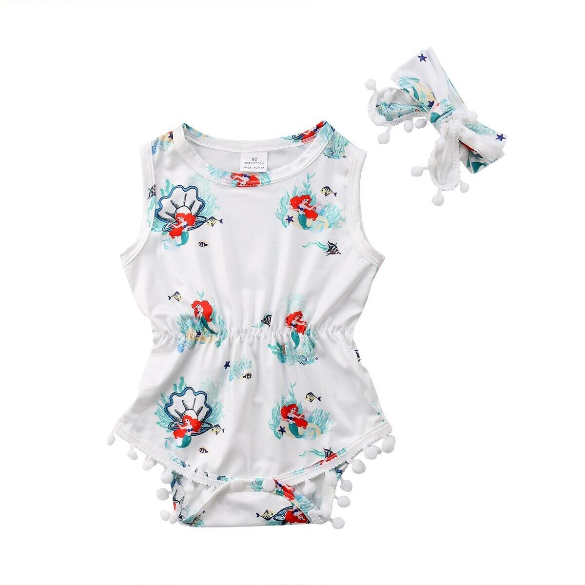 新作 生まれたベイビーガールズマーメイドロンパースベイビーガールズノースリーブ服ジャンプスーツ+ヘッドバンド
