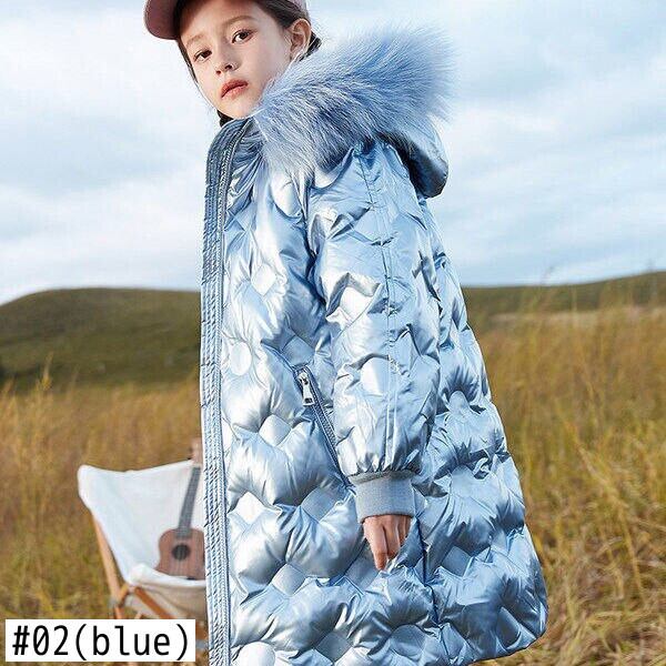新作 十代の若者たちの女の子冬のメタルカラーコート子供ロングパーカーパッド入りコットンフード付きジャケット女の子ロングウォーム衣装46 8 9 1012年