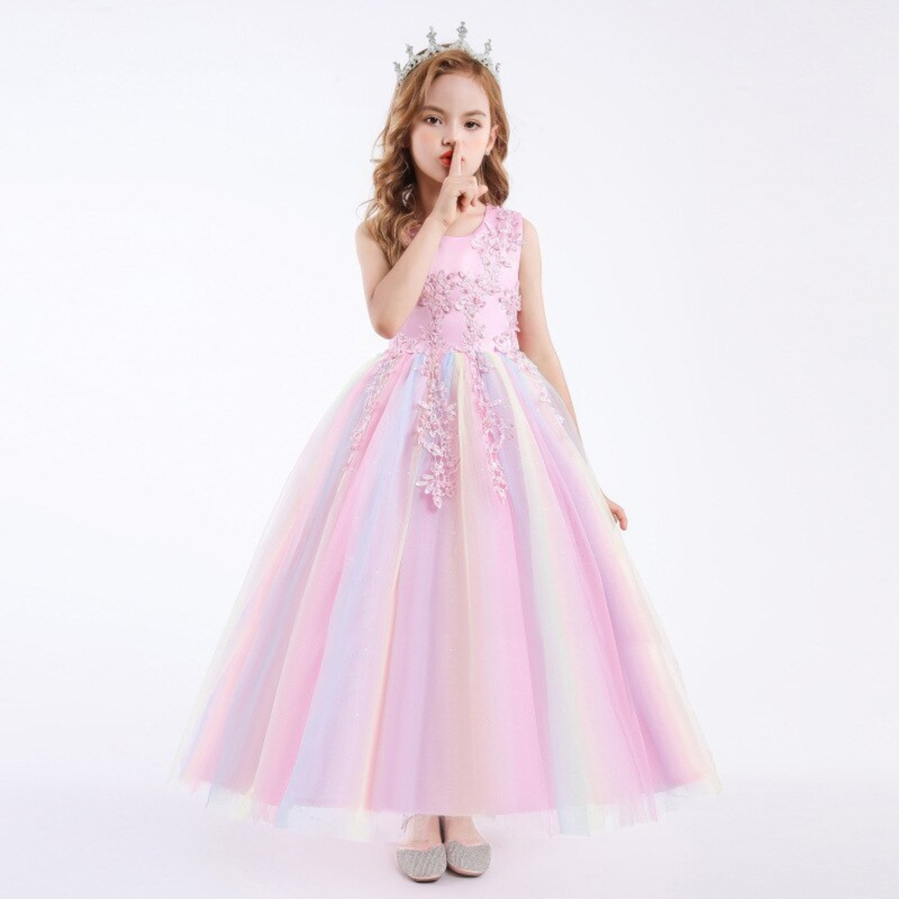 新作 4-14歳の女の子の結婚式フラワーガールのドレスパーティーページェントマルファーストフィーストイブニングドレスの女の子