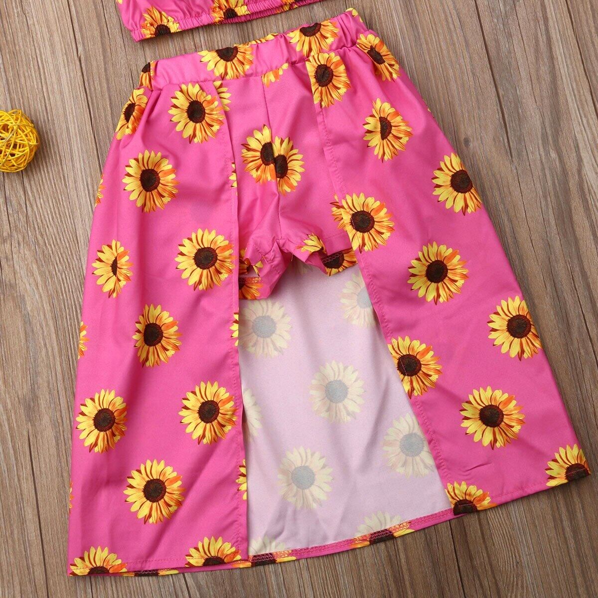 新作 1-6Y幼児ベビーキッドガールセットガールズヒマワリオフショルダーTシャツフリルスカートサマーフラワーガール服