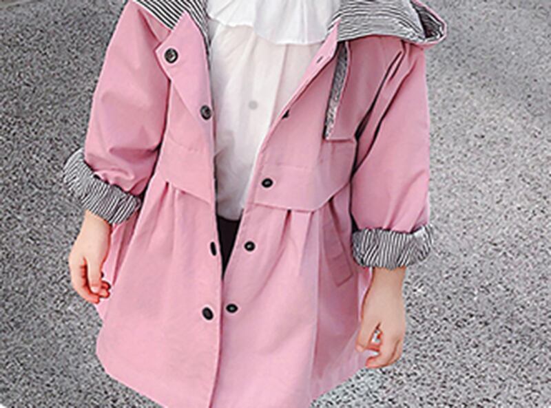 新作 春秋ガールズフード付きジャケットキッズガールトレンチコートキッドジャケットsパーカトレンチ風服