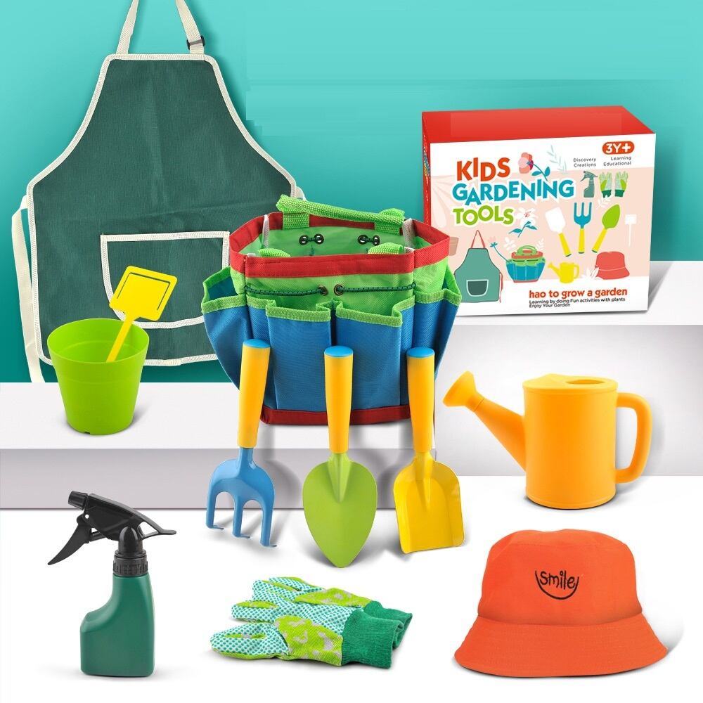 新作 おもちゃの子供たちのガーデニングツールセット-じょうろ、シャベル、レーキ、k-バッグ付き屋外おもちゃを含むガーデニングおもちゃの子供たち