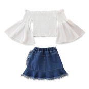 新作 1-6Y幼児キッド女の赤ちゃん服セットフレアスリーブ長袖トップスデニムTelスカート衣装夏春子供s
