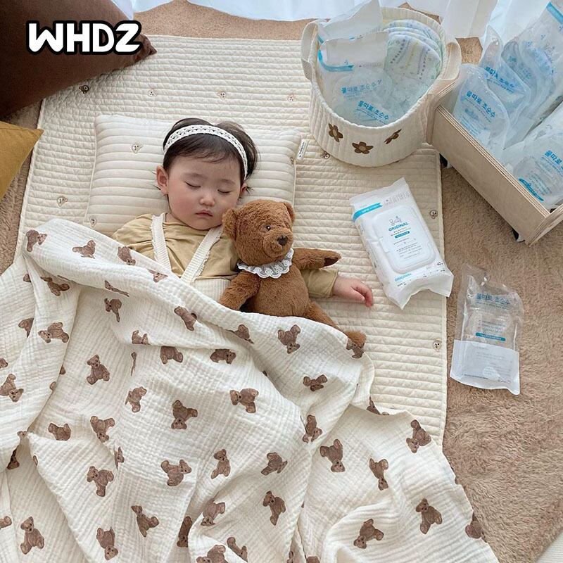新作 NEW秋のベビーブランケットベアプリントコットンブランケットスリーピングブランケットベビー0-3歳