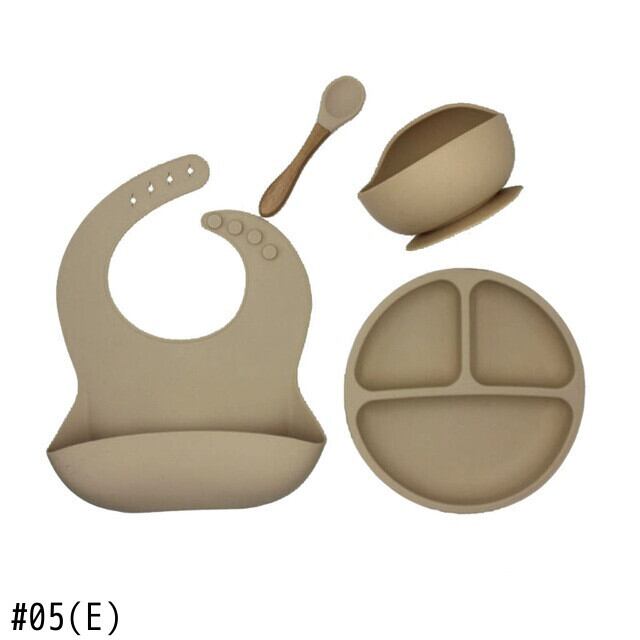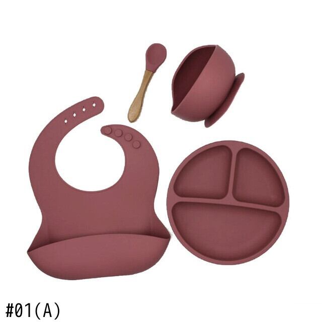 新作 4個/セットBPAフリーベビーシリコン食器防水ビブ無地ディナープレート吸盤ボウルとスプーン子供