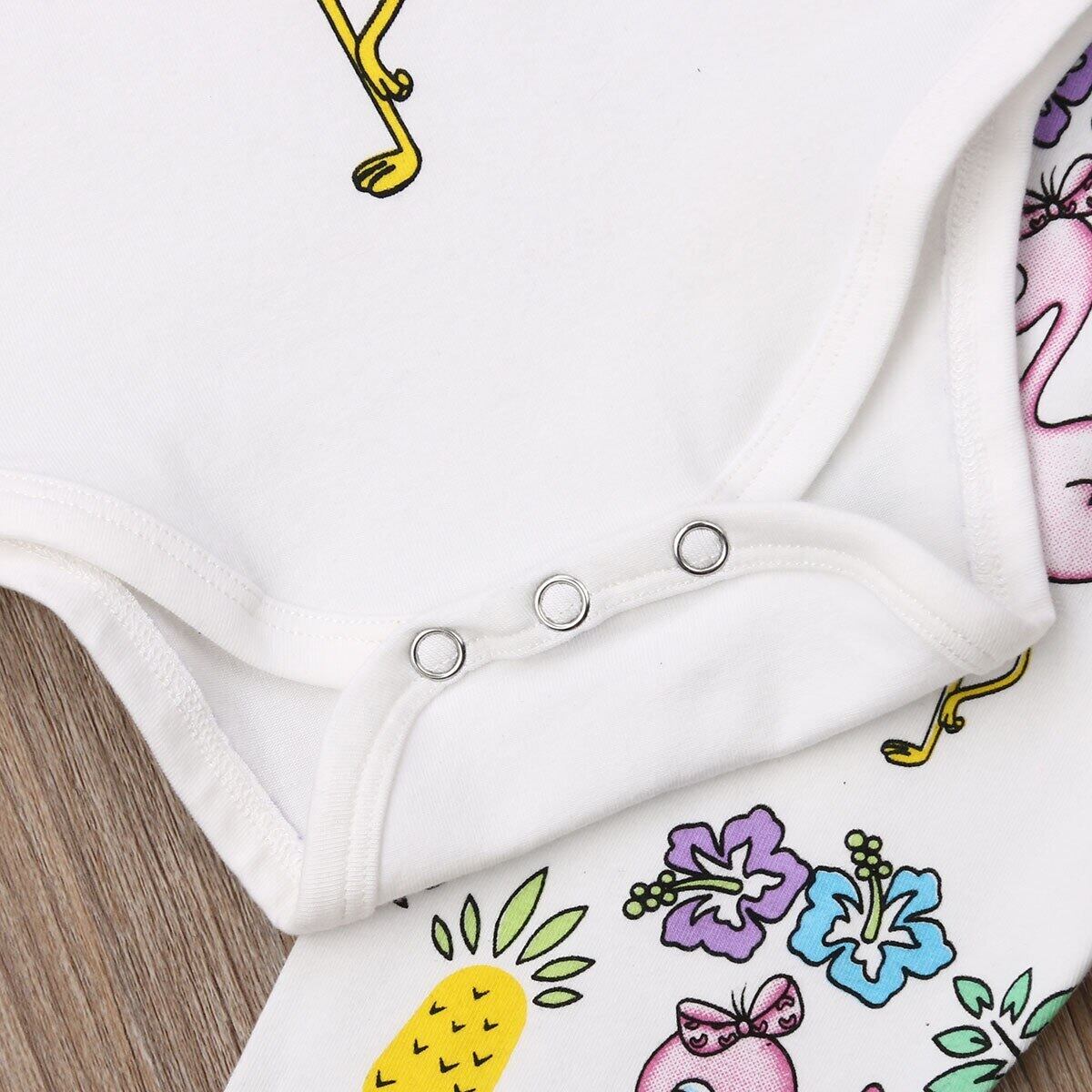 新作 0-18M綿生まれの女の赤ちゃんの服セット幼児のフラミンゴ半袖ロンパース+パンツ+帽子+ヘッドバンドの衣装