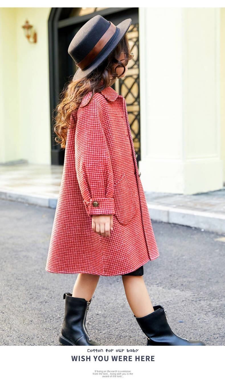新作 若い女の子ロングパーカーウールコート2020年冬レッドキッズガールズ服子供ジャケット衣装アウター68 9 10 1112年