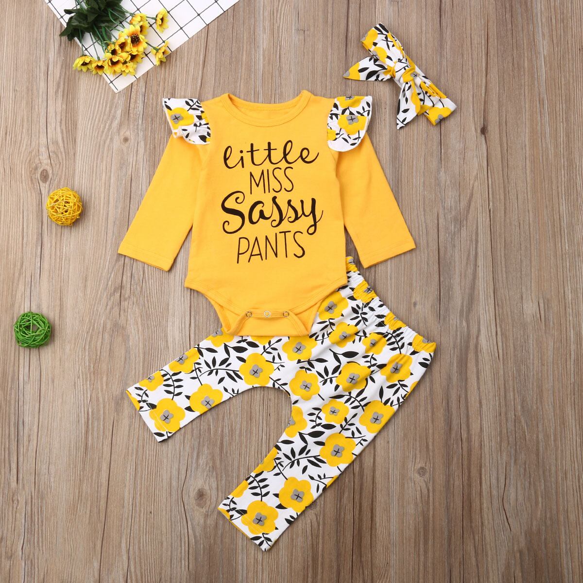新作 0-24M幼児生まれの女の赤ちゃんの服セットレターフリルロンパーストップフラワーパンツ衣装赤ちゃんの秋の春