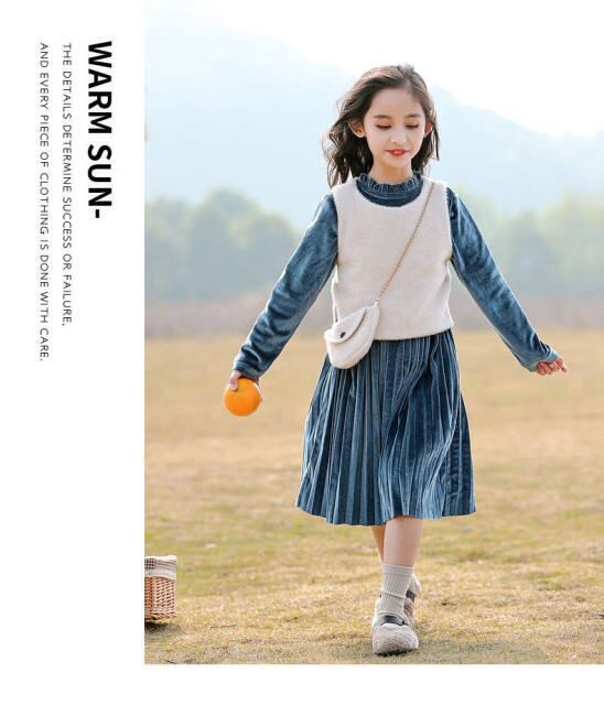 新作 冬のドレス長袖チュチュ別珍ドレス子供パーティー子供春のドレス10歳の女の子