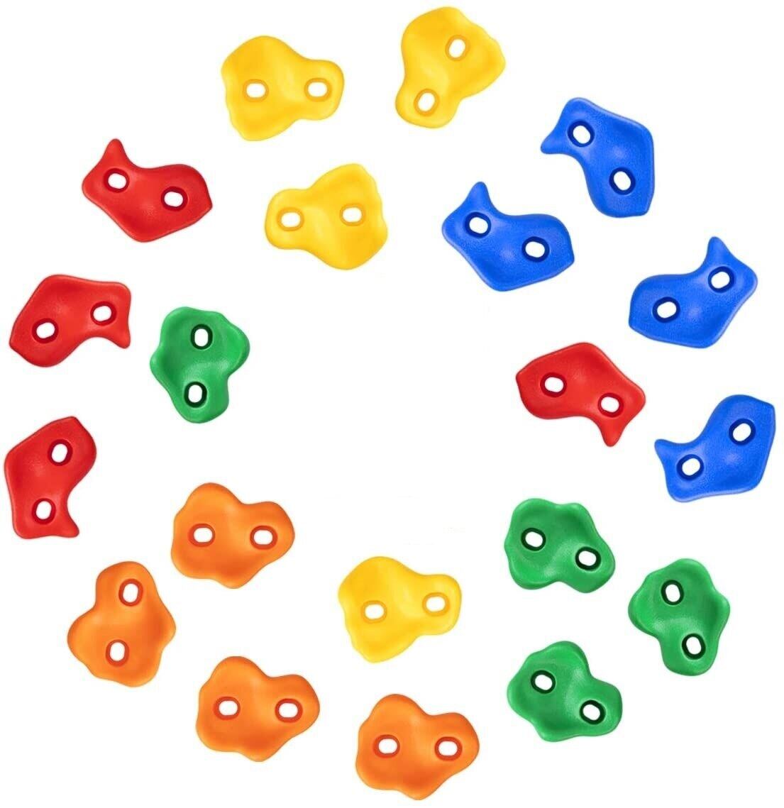 新作 20ロックウォールクライミングホールドセット、2個の安全ハンドル、キッズクライミングロック屋内屋外プレイセット、ロックウォールハンドホールド