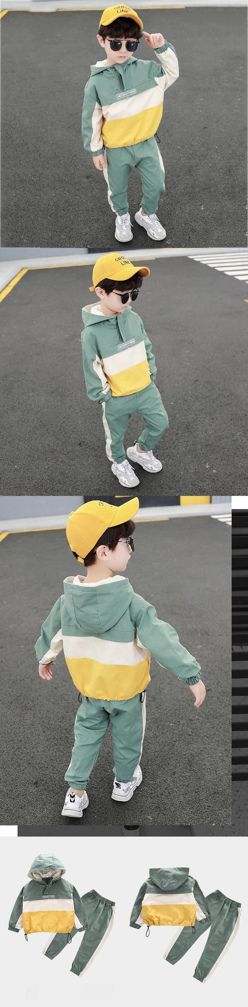 新作 子供男の子のトラックスーツの服セットパッチワークスポーツスーツキッドコットンジャケットロングパンツ子供服スーツ8年