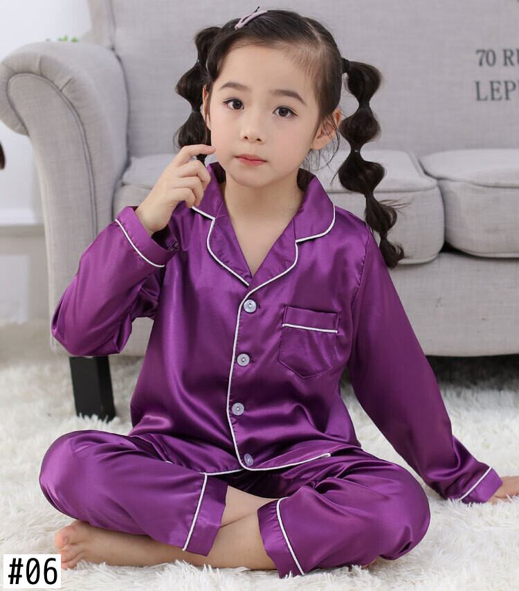 新作 11 12 1314年長袖シルクパジャマティーンガールズボーイズpjs秋のパジャマセットシルクサテンピジャマパジャマパジャマパジャマスーツ