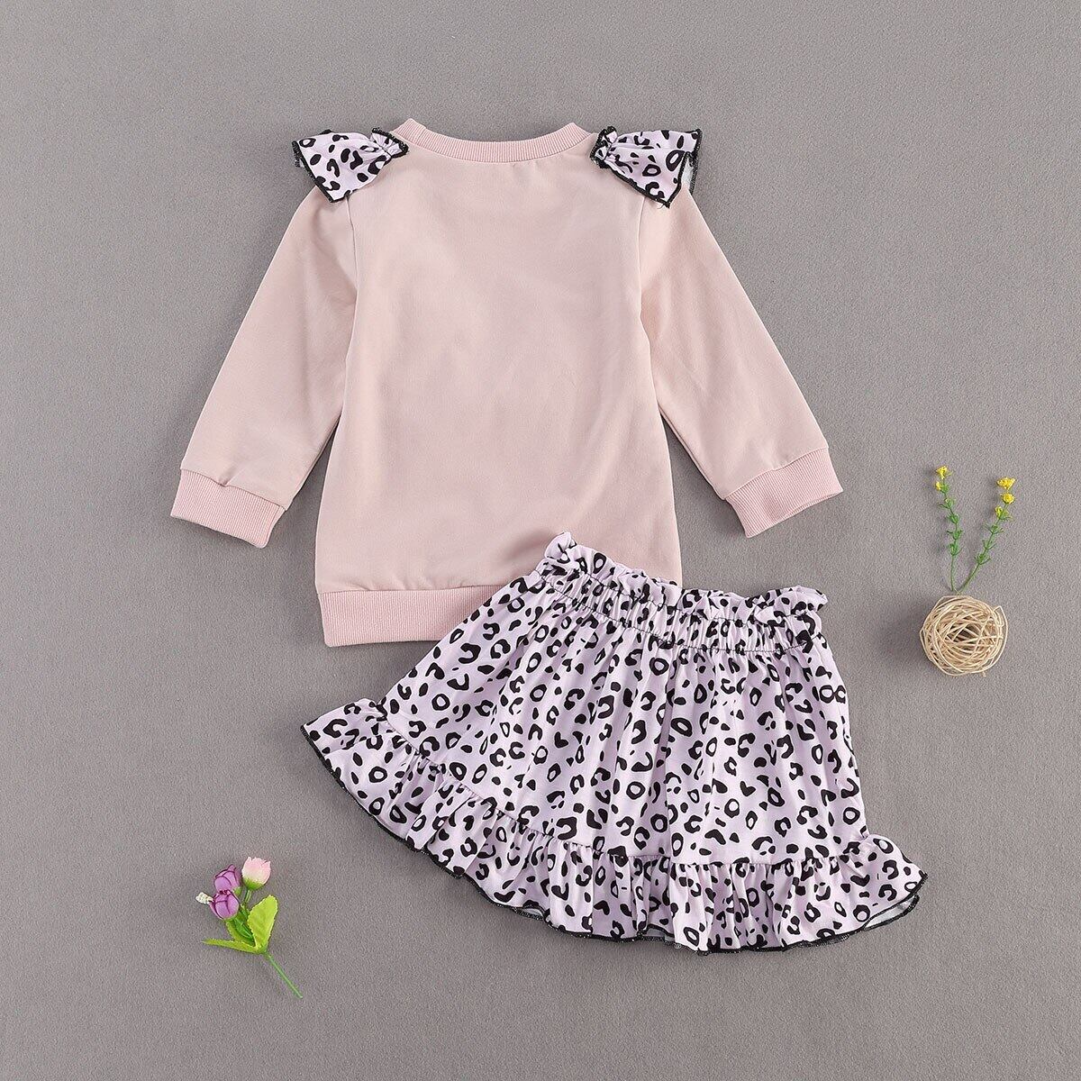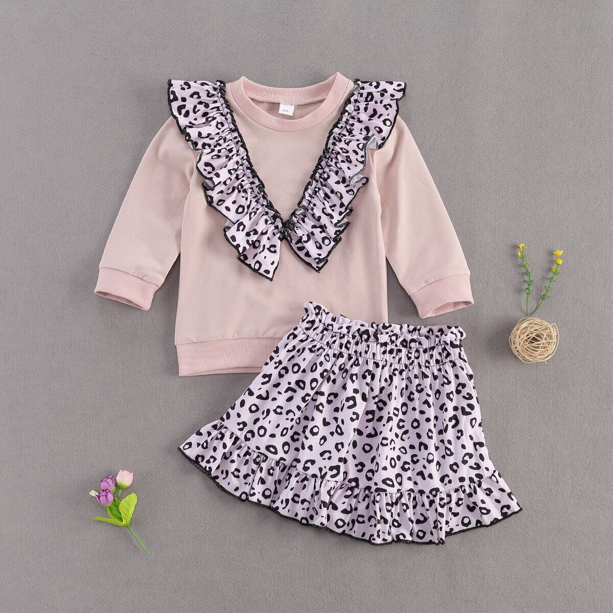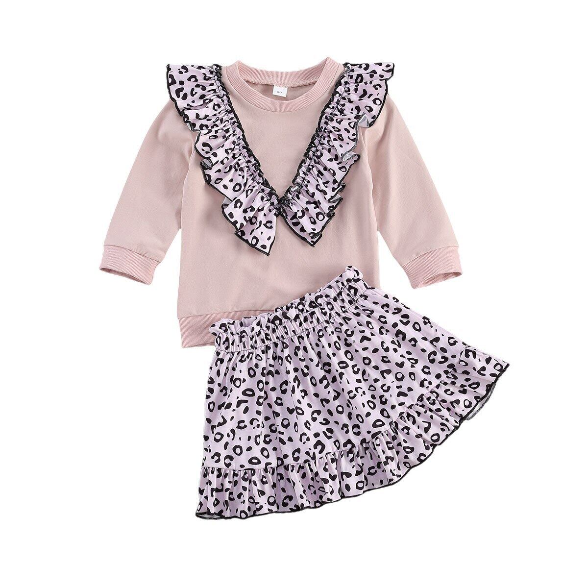 新作 Ma&Baby2-6Y秋冬幼児キッドチャイルドガールズ洋服セットフリル長袖プルオーバートップヒョウスカート子供服
