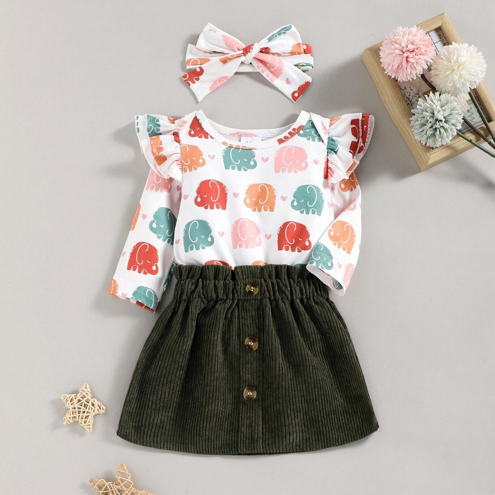 新作 Ma&Baby0-18M生まれの幼児用ベビーガール服セットフリル長袖エレファントプリントロンパーススカート秋春衣装d84