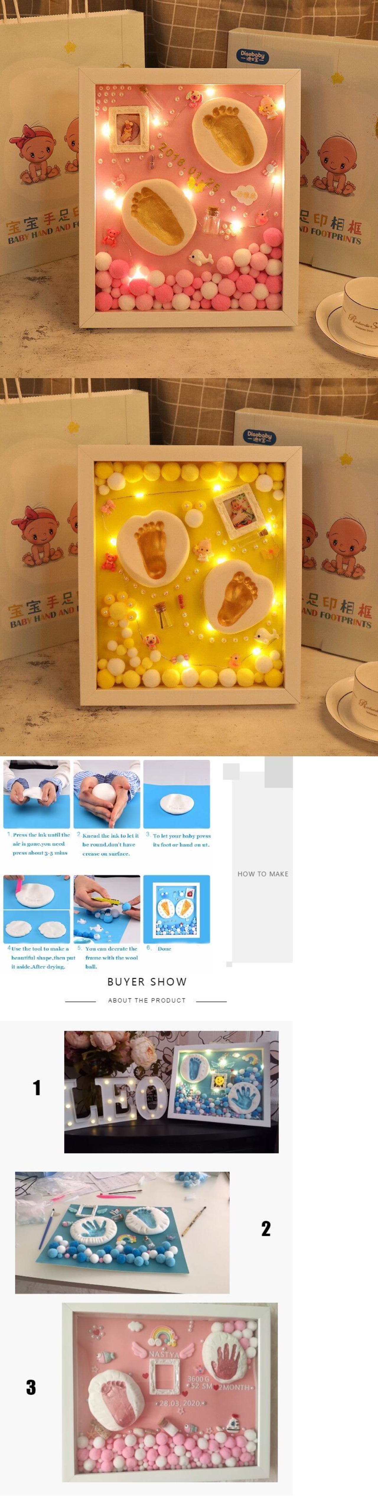 新作 3DDIYベビーハンドプリントとフットプリントソフトクレイポーフレーム生まれのマイルストーンカード幼児ハンドキャスティングキットベビーお土産セット