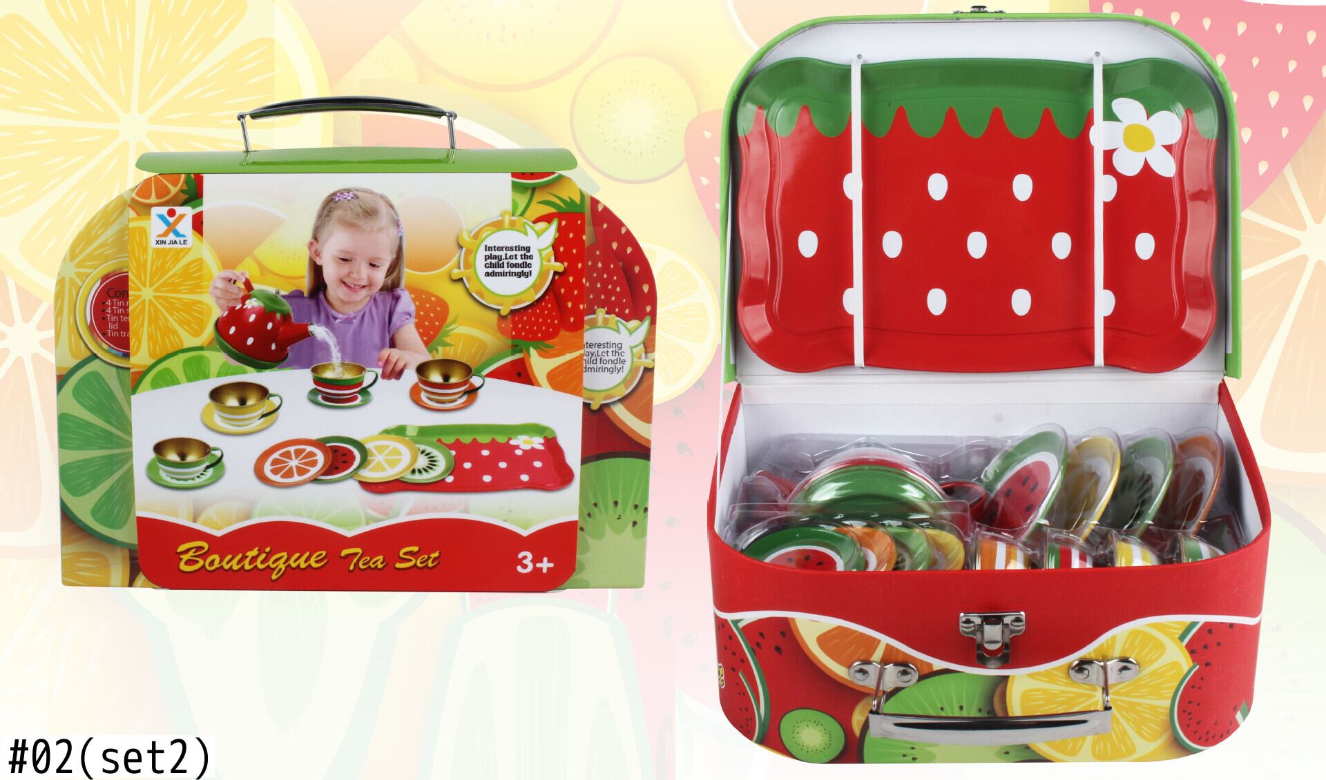 新作 1セットキッズフルーツをテーマにしたティンティーパーティーおもちゃセット-メタルティーポットとカップ子供用キッチンふり遊び
