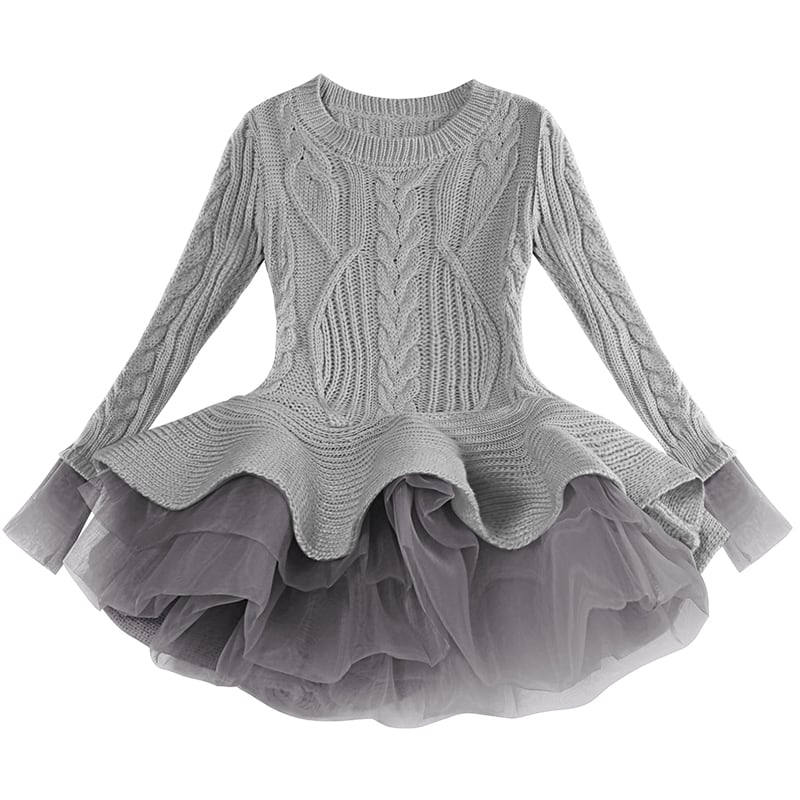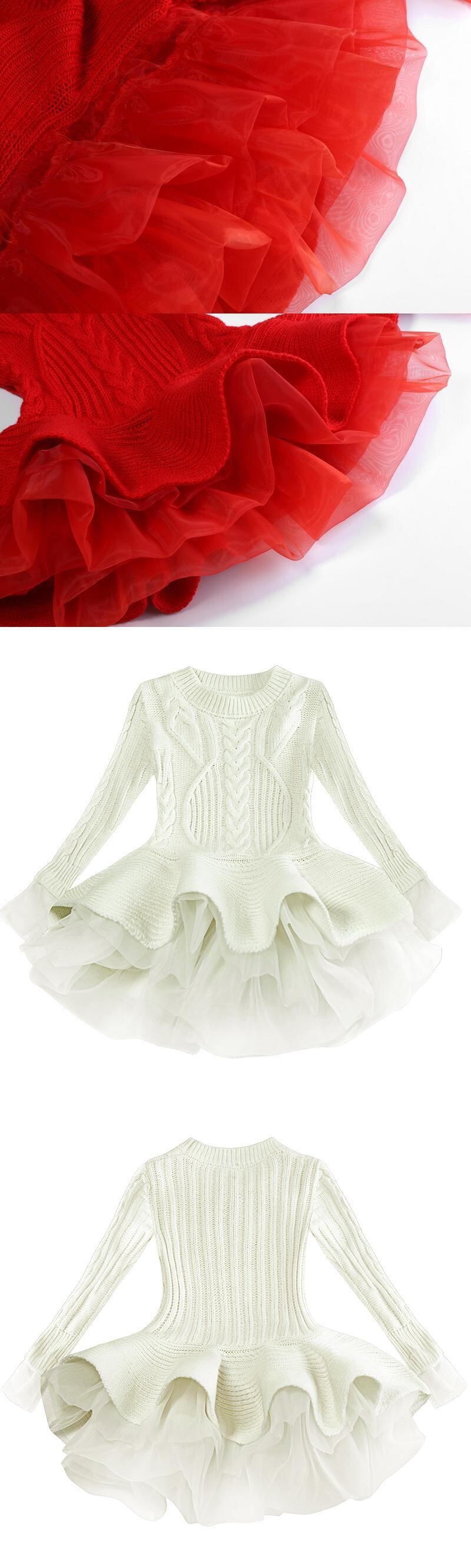 新作 ニット秋冬ガールズミニチュチュドレス長袖レースメッシュキッズドレスガールドレスウェディング