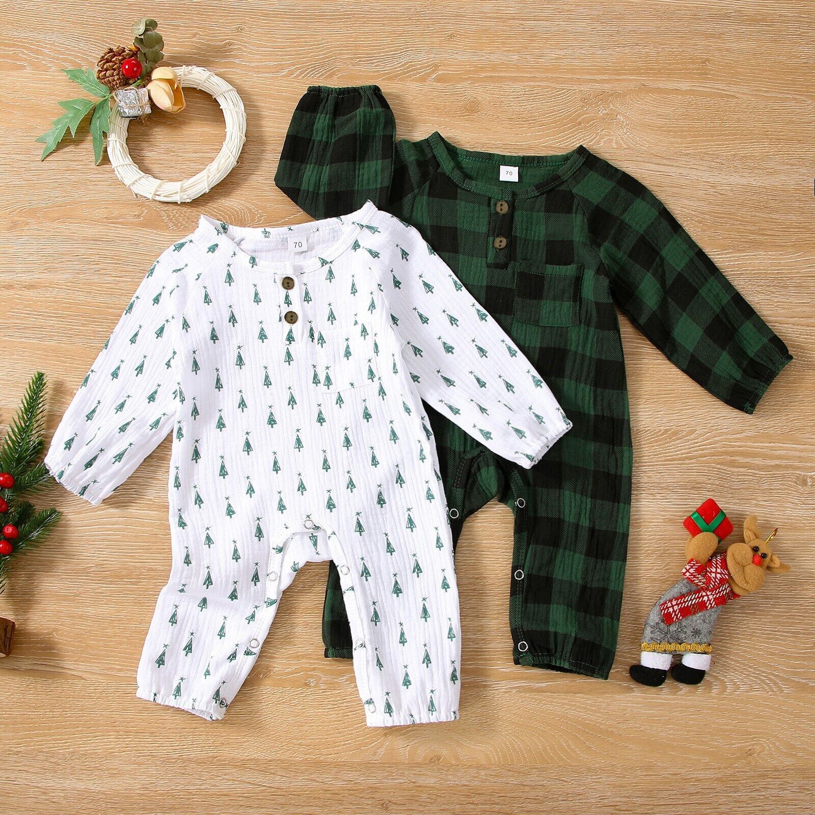 新作 Ma&Baby0-18Mクリスマス生まれの幼児ベビーガールズボーイズジャンプスーツ長袖チェック柄ロンパースクリスマス幼児ベビーD11
