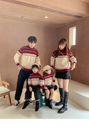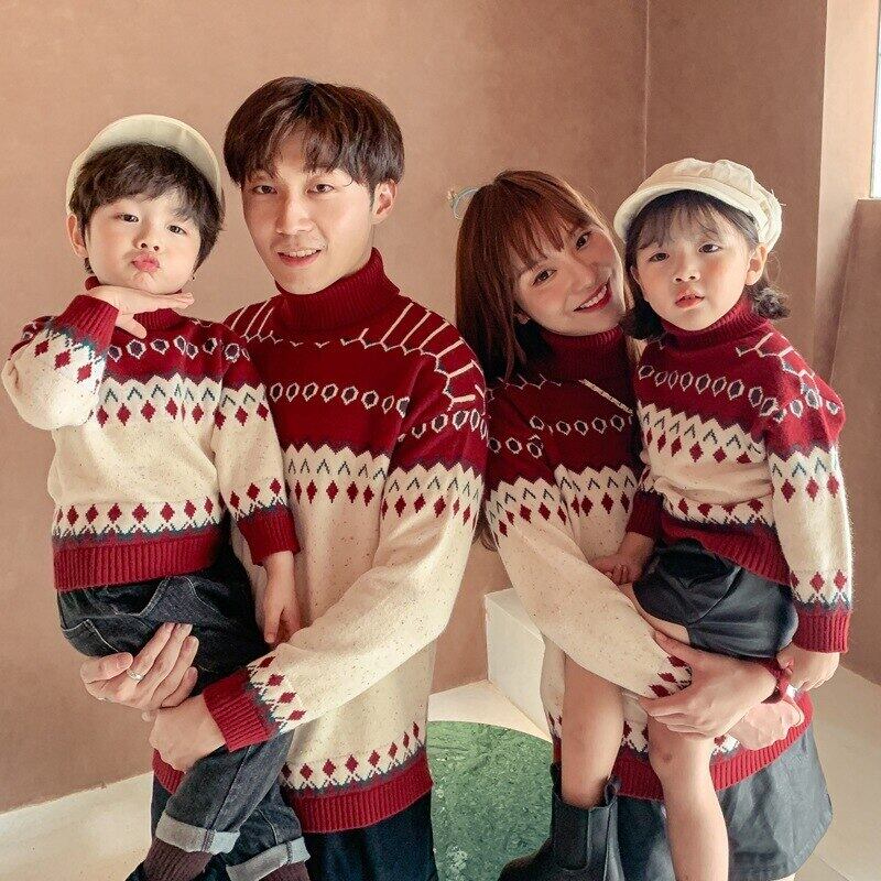 新作 冬のクリスマスセーター母娘マッチングトップス親子衣装キッズお父さんママ息子ニット暖かいパッチワーク