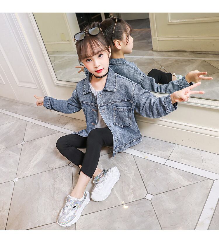 新作 ガールズデニムフード付きジャケットウインドブレーカーキッズアウターウェアスプリングクロスコート防風ガールジャケット46 8 1112年