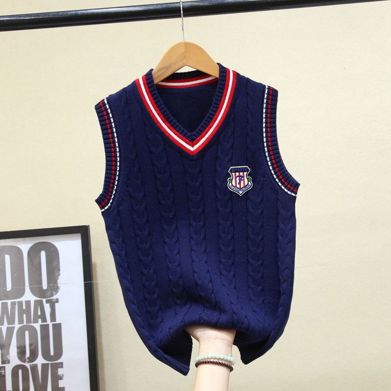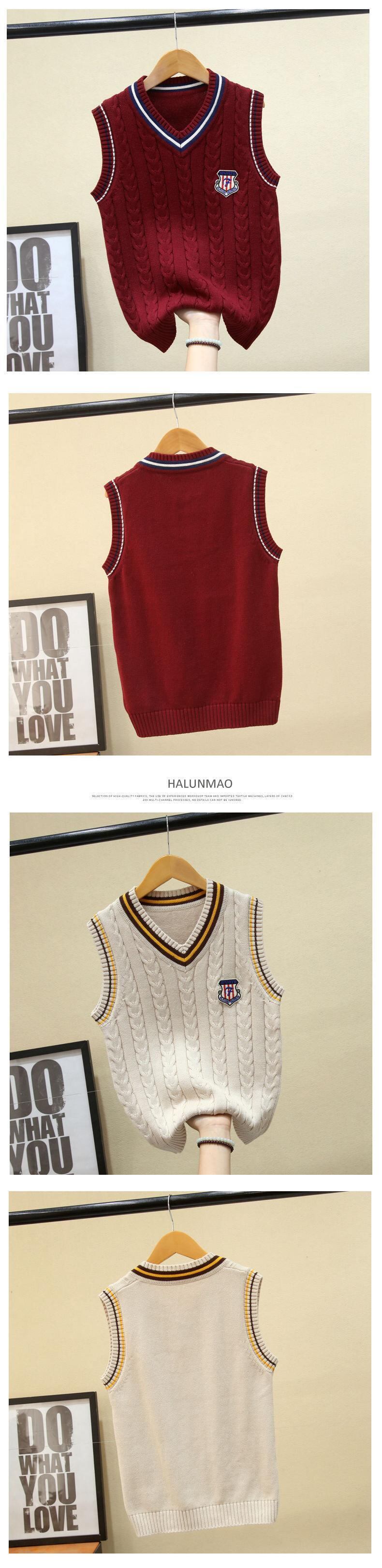 新作 アーガイル綿ニットプルオーバー男の子のVネックセーターベストキッドチョッキ女子高生冬ノースリーブセーター10 1112年