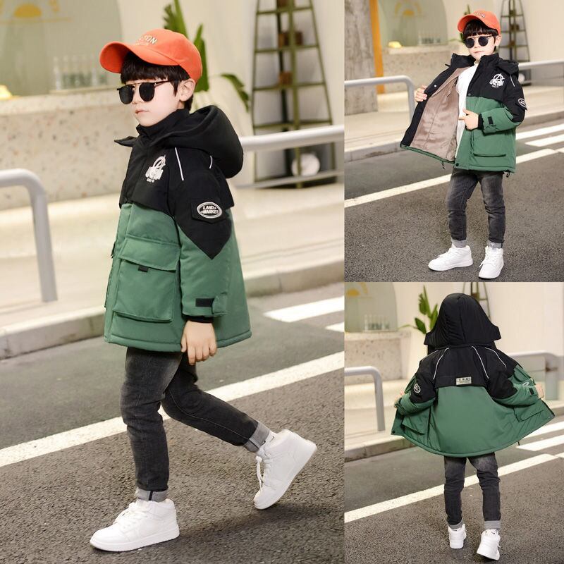 新作 4 5 6 7 8 9 10 11 12 Years Kids Teens Boys Coats 2021 Winter Hooded Jacket Cotton Patchwork Children Boys Outfits Fleece Parkas