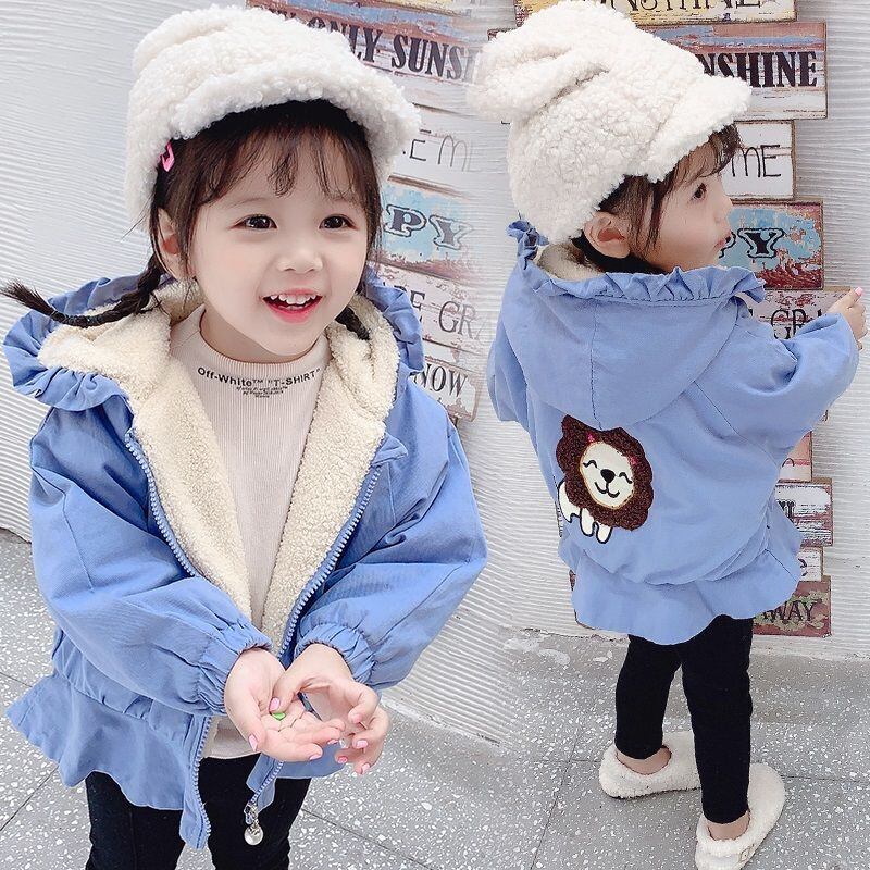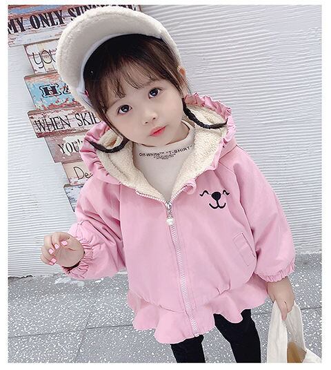 新作 1-5歳 フリルフード付きジャケットベイビーリトルガールズウィンターコート 子供パッチワークアウターウェアキッズガールズパーカ服