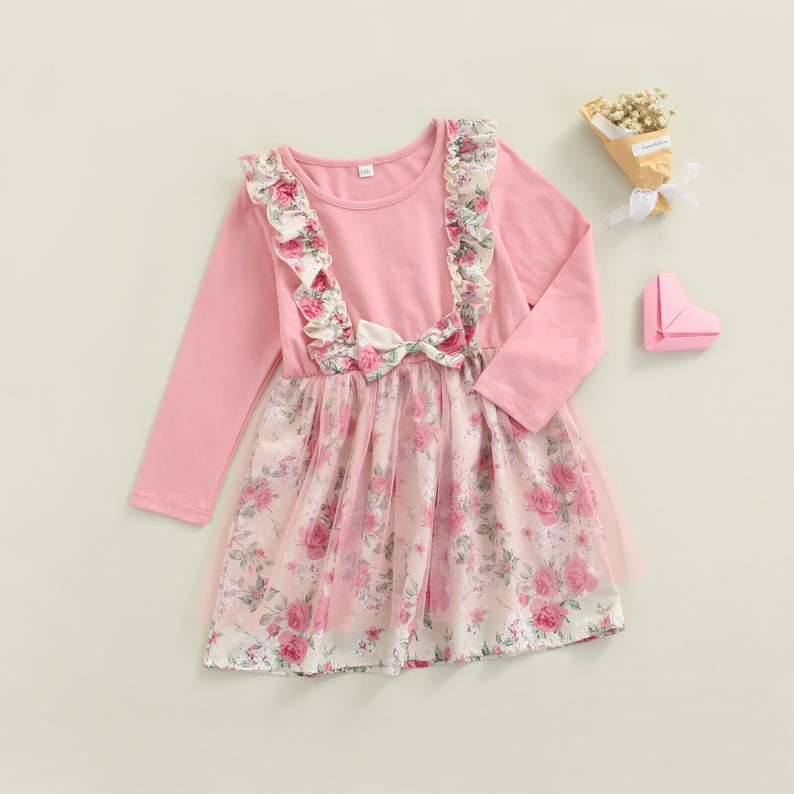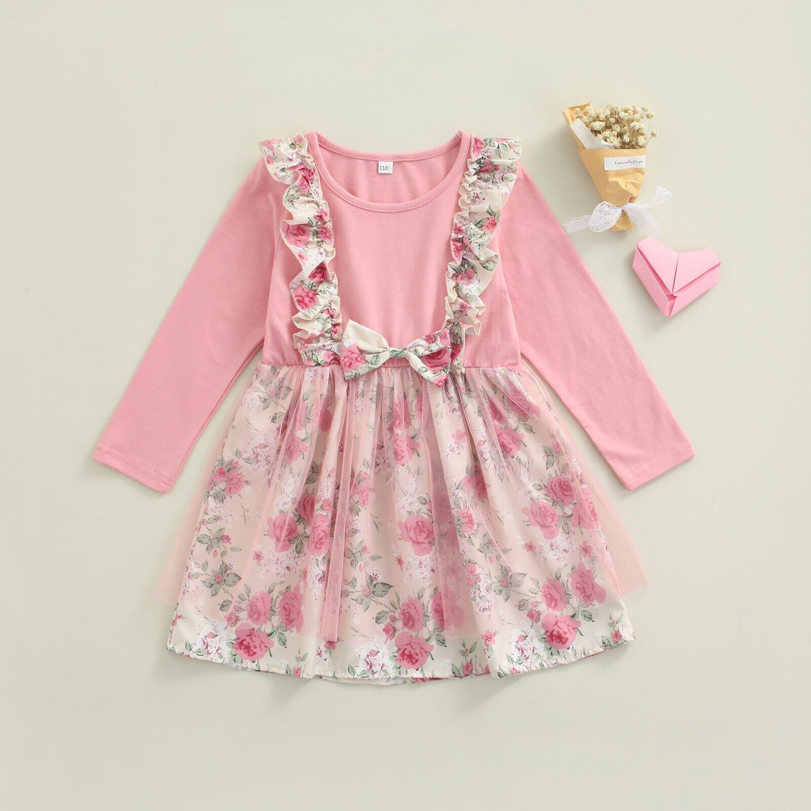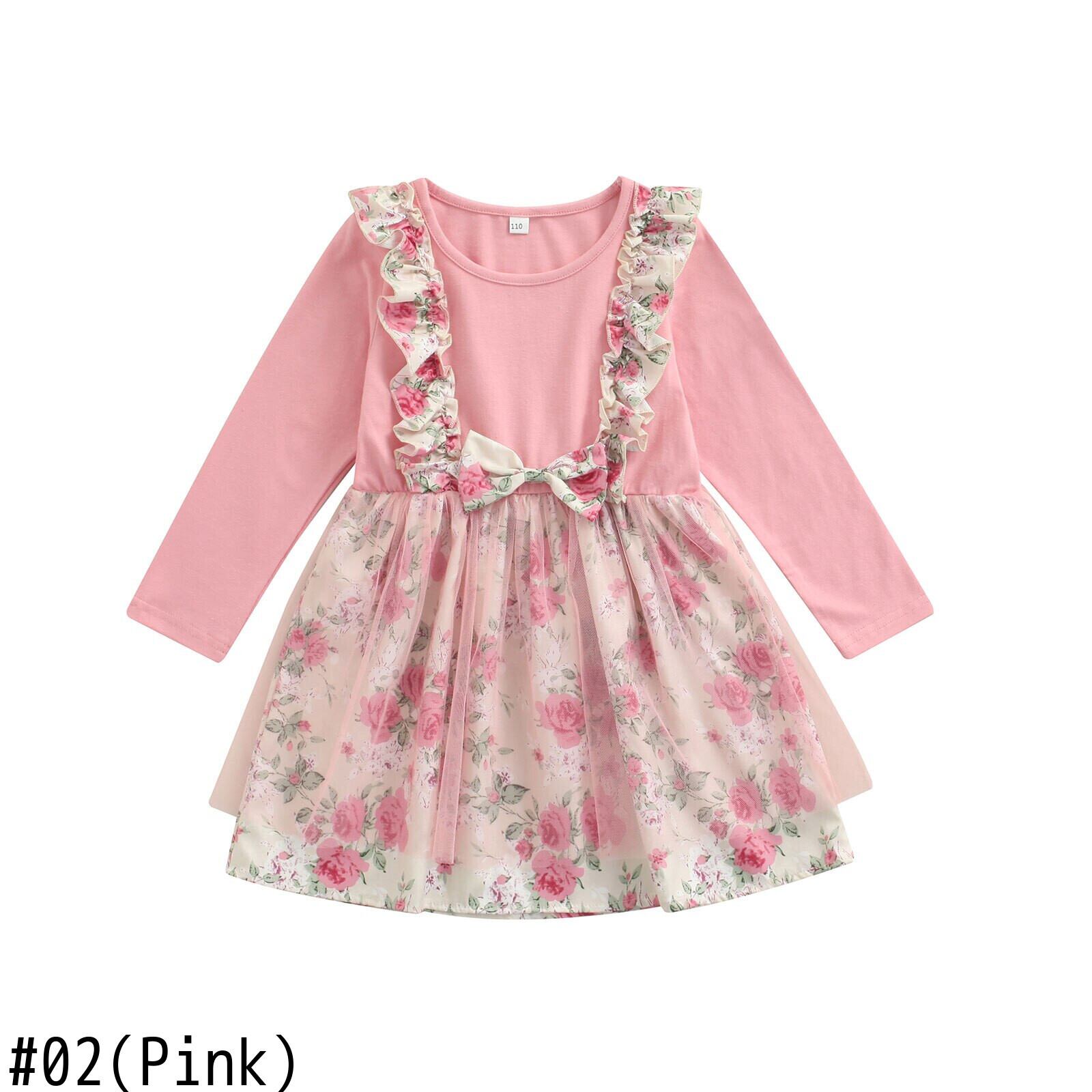 新作 Ma&Baby1-5Y幼児ベビーキッドガールズフローラルドレス長袖ボウフリル裏地付きドレスガールズ秋春sD11
