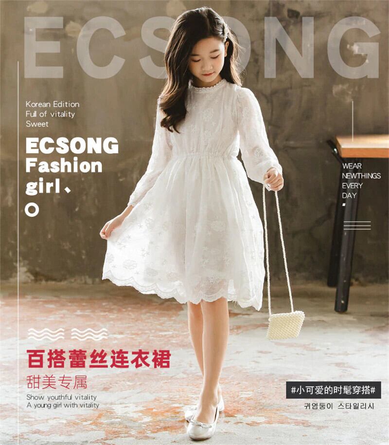 新作 キッズドレス10代の白い結婚式のパーティーレースの女の子のドレス長袖子供カーニバル春秋68 10 12 1416年