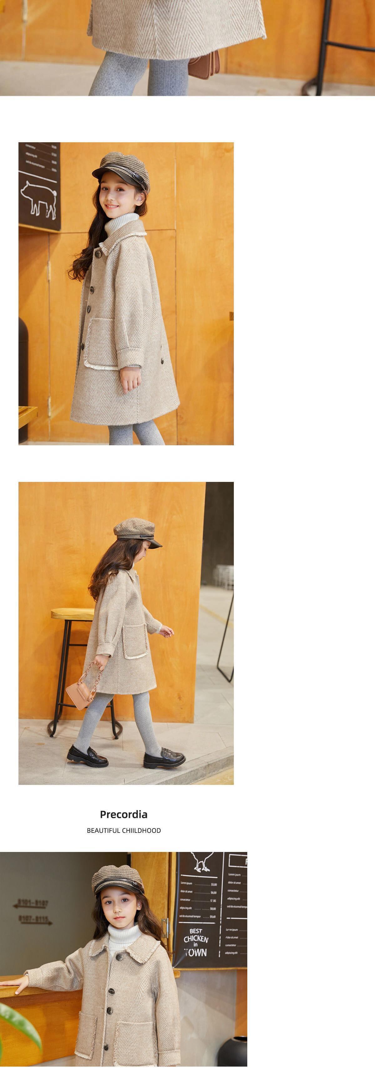 新作 若い女の子ロングパーカーウールコート2021年冬ブルーキッズガールズ服子供ジャケット衣装アウター68 9 10 1112年