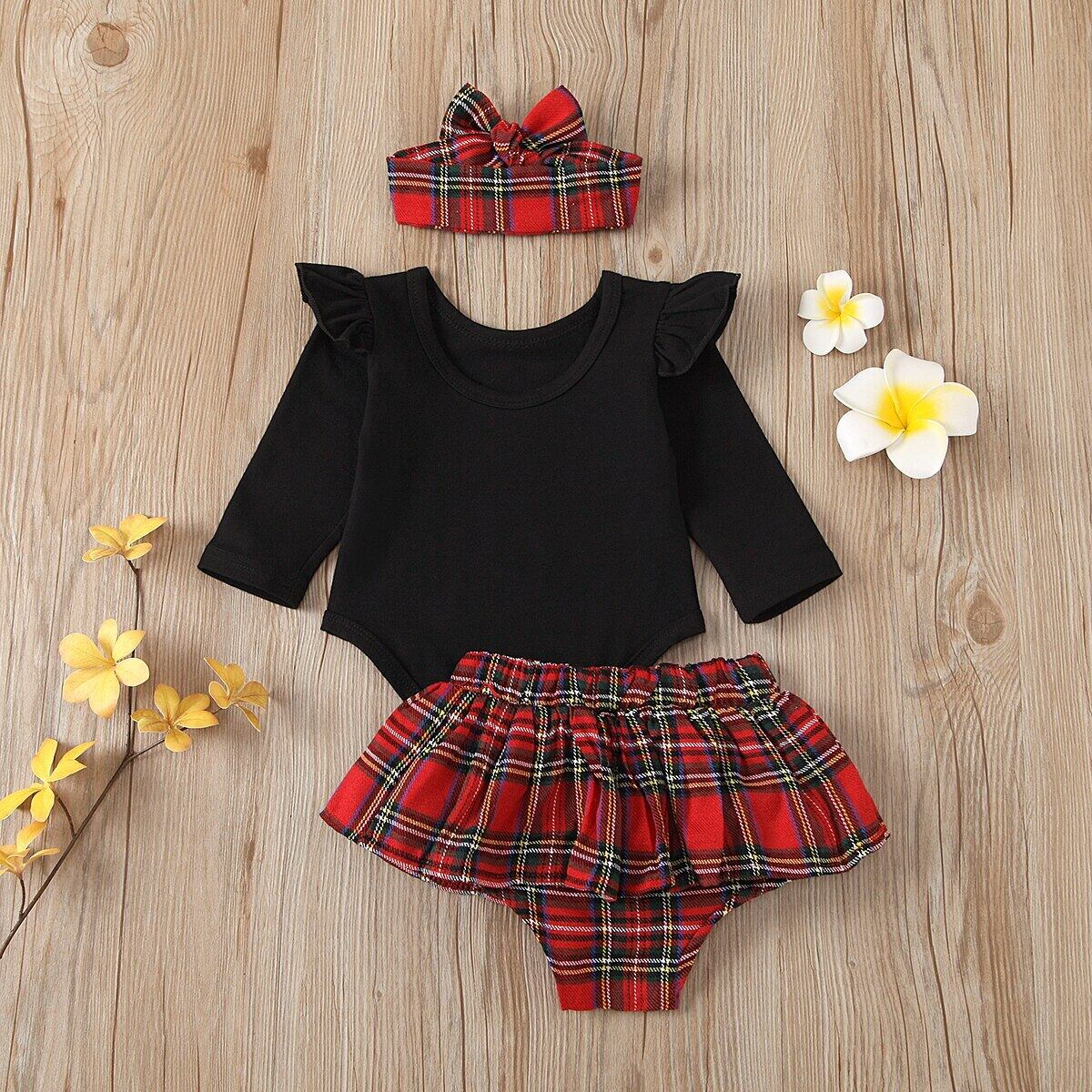 新作 Ma&Baby0-24Mクリスマス生まれの幼児の女の赤ちゃんの服セットサンタロンパースフリルチェック柄スカートヘッドバンドクリスマス衣装